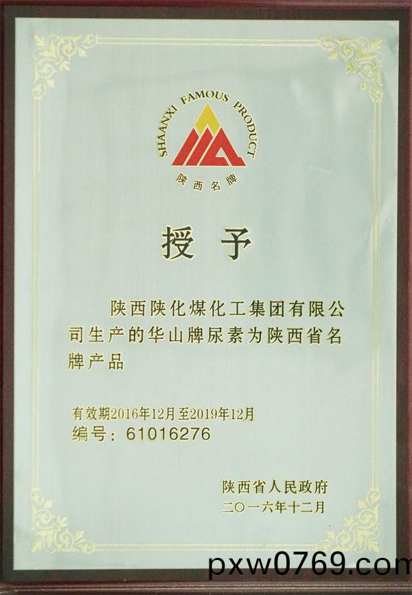 省政府授(shou)予(yu)陝(shan)化牌尿素(su)爲(wei)陝西省名(ming)牌産品(pin)